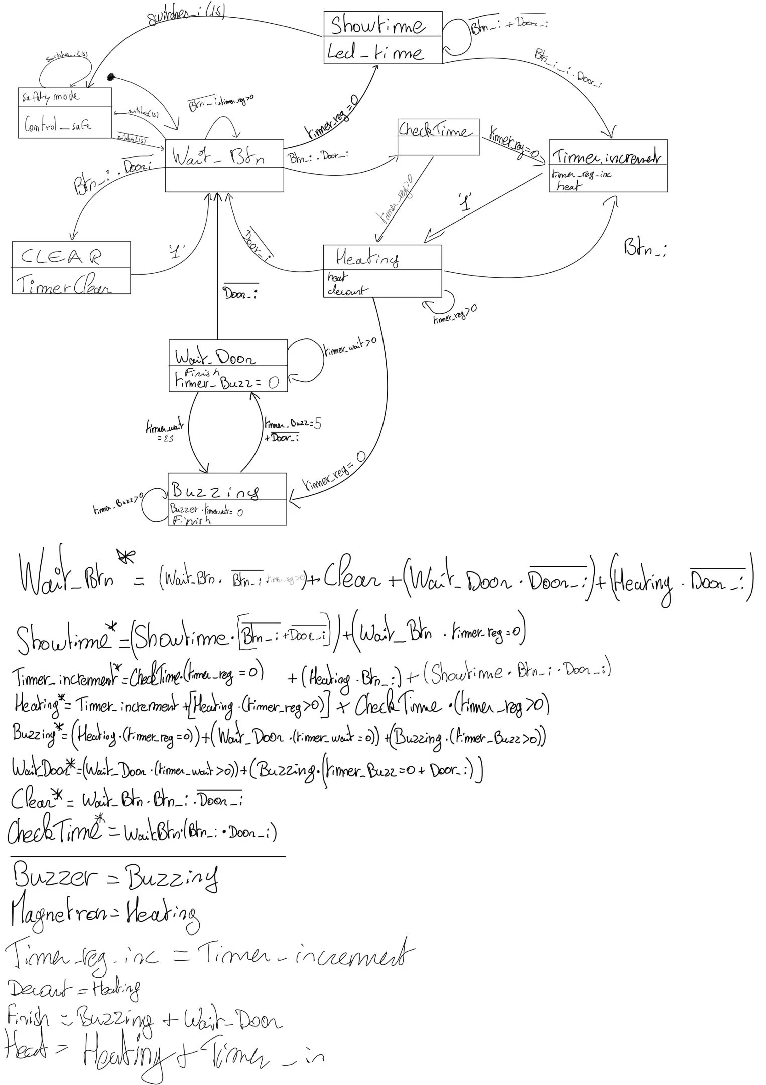 Ce projet consistait en la modélisation comportementale d'un four micro-ondes sous forme de machine à états finis (FSM) en VHDL. Il intégrait la gestion des modes (puissance, minuterie, arrêt d'urgence, sécurité enfant), la synthèse sur FPGA et la validation par simulation. Dans le cadre de mes cours, nous avons utilisé une carte BASYS3, ce qui m'a permis d'apprendre l'écriture d'un langage de description matérielle. À partir d'un cahier des charges, nous avons dû répondre aux besoins du système en passant par une modélisation sous forme de graphe d'états.